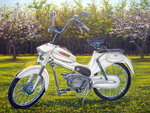 2009Klassieke bromfiets witte Puch ( VS 50D 1958) Hoog stuur ; flower power- uitvoering