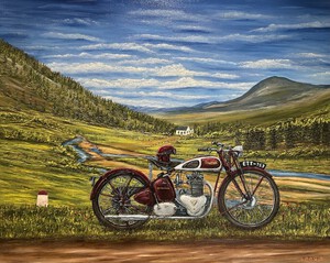 1995Norton Manx, Matchles G50, AJS (Boyracer). Olieverfschilderij